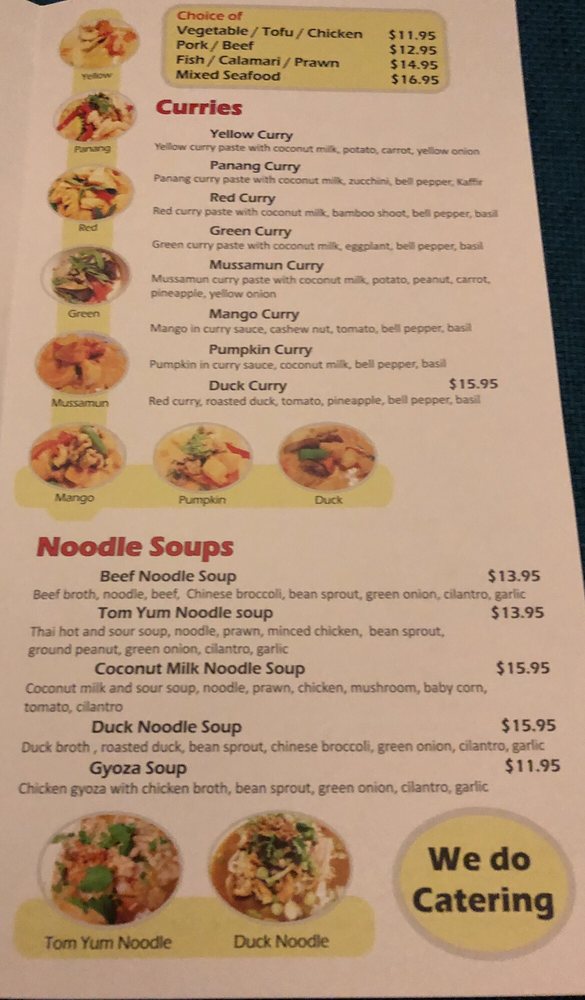 From the moment you browse the menu, the appetizers like the Tempura Shrimp and Cream Cheese Crab Meat Wontons set a promising tone. The curries shine brightly; the Massaman Curry bursts with rich, sweet flavors, while the savory depths of Duck Curry delight. Don't miss the dishes like Pad Thai and Basil Fried Rice, celebrated for their flavor and generous portions.